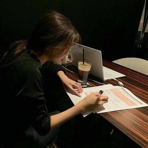Her glasses slid slightly down her nose as she highlighted a journal excerpt. Her phone buzzed. It was a reminder: